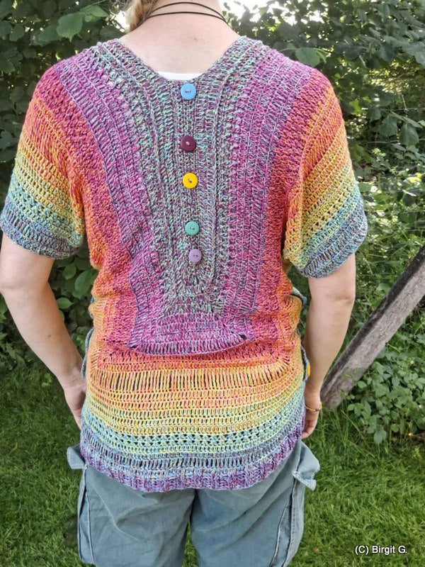 Die Anleitung besteht aus einer ausführlichen schriftlichen Anleitung sowie Häkelschrift mit Erklärungen. Der Pulli ist auf jede Körpergröße anpassbar, benötigt aber natürlich je Körpergröße unterschiedliche Mengen an Wolle.