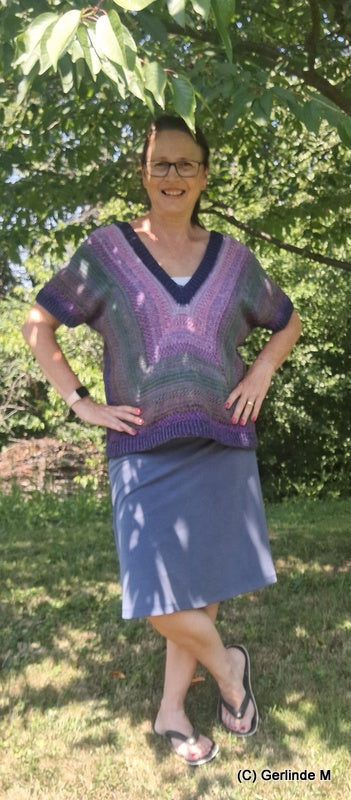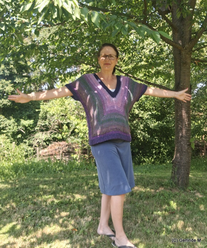 Der Pulli wird von der Mitte heraus gearbeitet und kann daher gut an die gewünschte Größe angepasst werden.