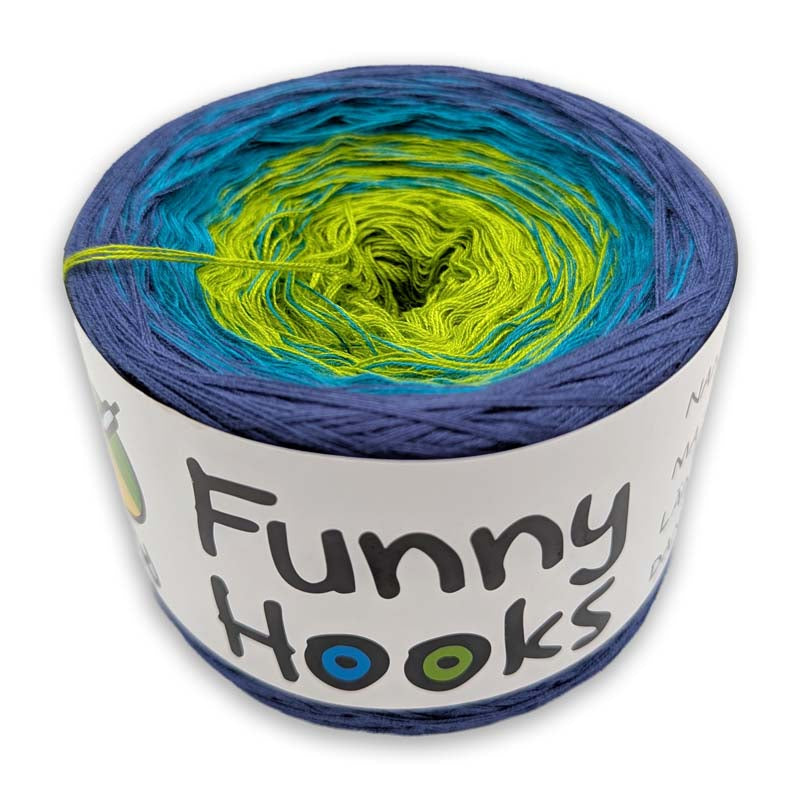 Ich verwende für die Funny Hooks 100 % Viskose Bobbel Garne aus 100 % Viskose.